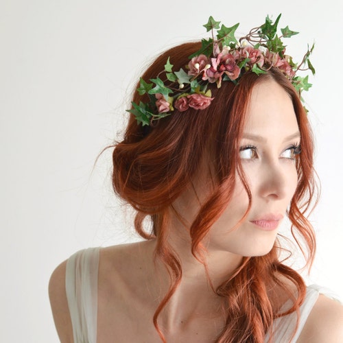 Ivy Flower Crown Pink Floral Crown Ivy Headband Rose Etsy